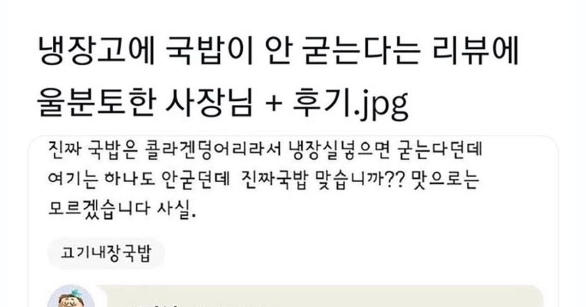 냉장고에 국밥 안 굳는다는 리뷰에 울분토한 사장 ,,