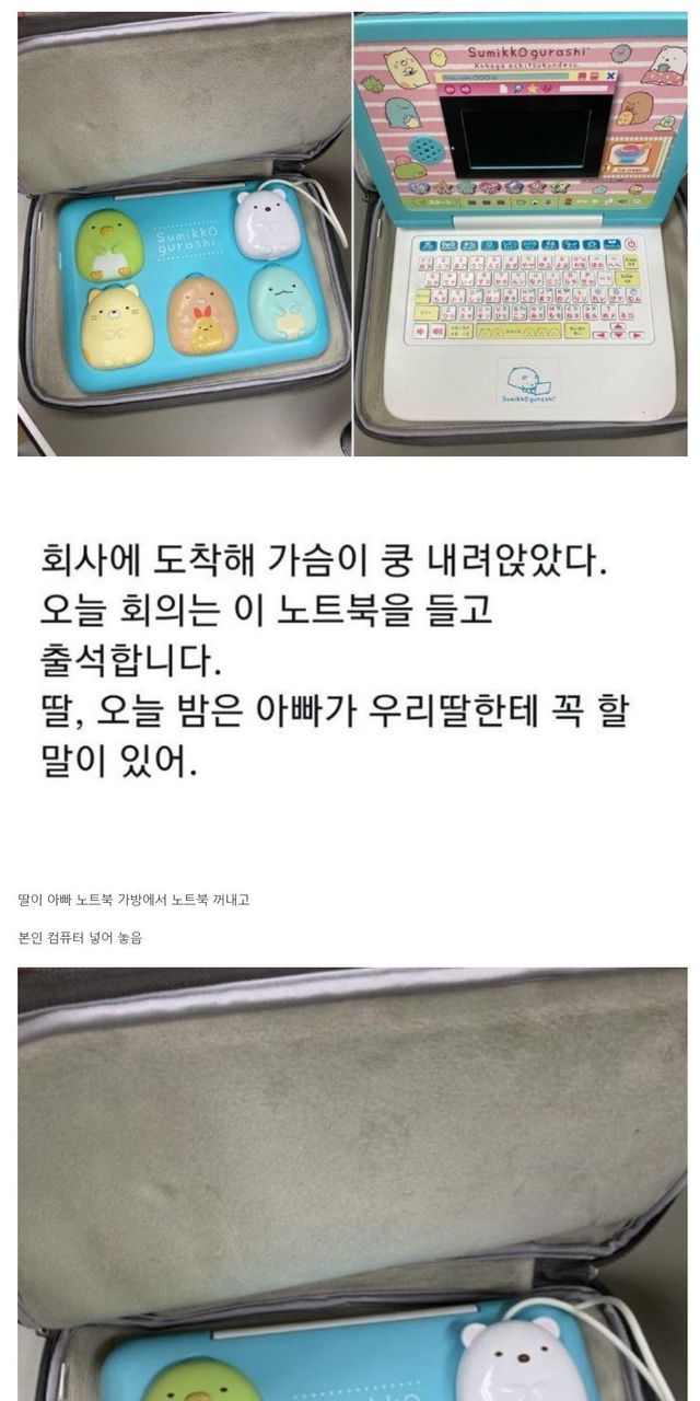 딸의 노트북을 가지고, 회의 참석한 아빠